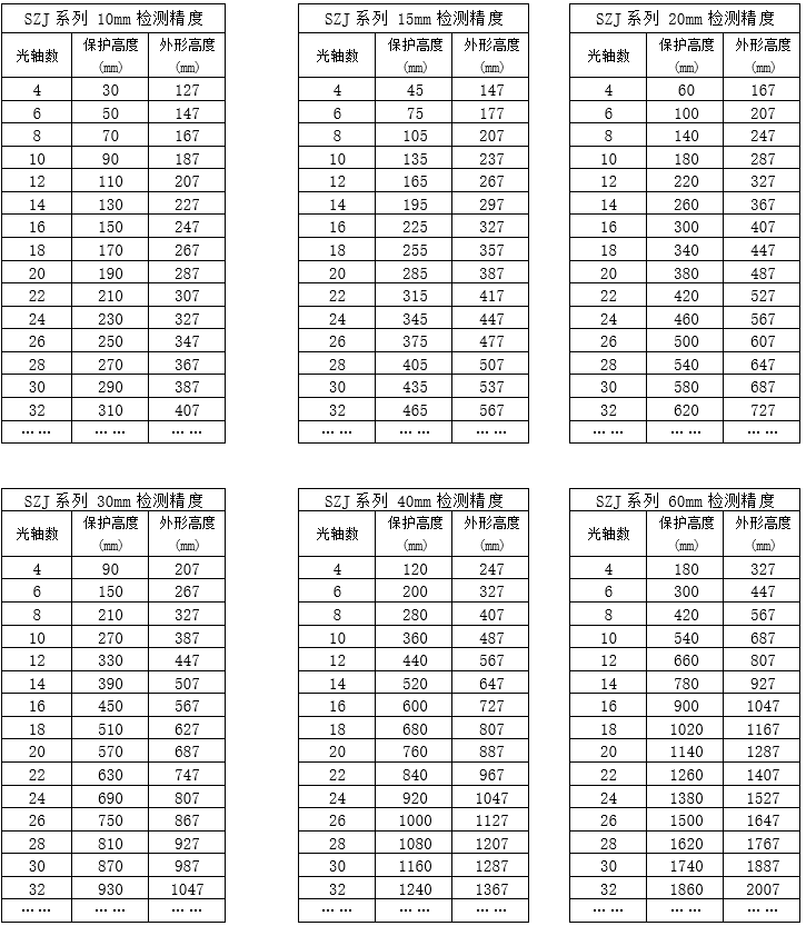 可配套的光幕規(guī)格 |