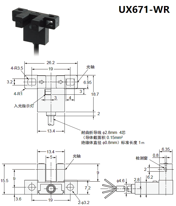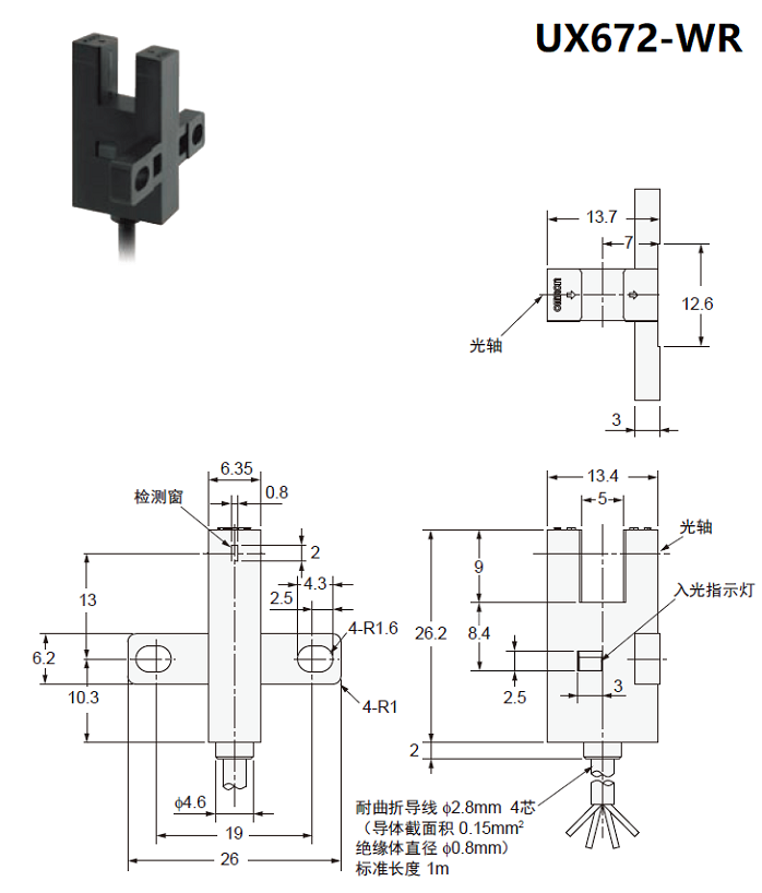 新款UX67系列帶線槽型光電傳感器