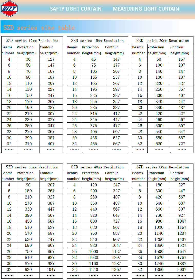 SZD Series Enhanced Safety Light Curtain Safety Gratings - Technical Specifications Overview