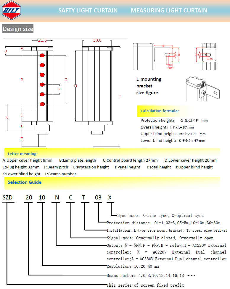 SZD series Safety light curtain Safety grating, cross-sectional area: 35*50mm