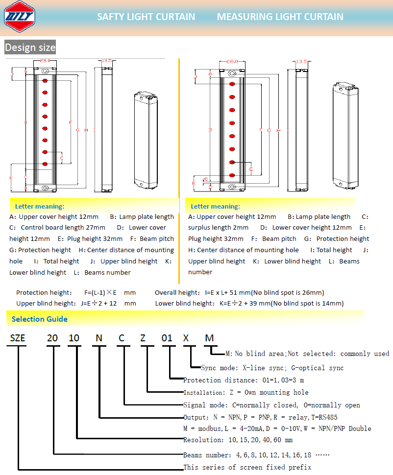 SZE ultra-thin safety light curtain safety grating – technical specification overview