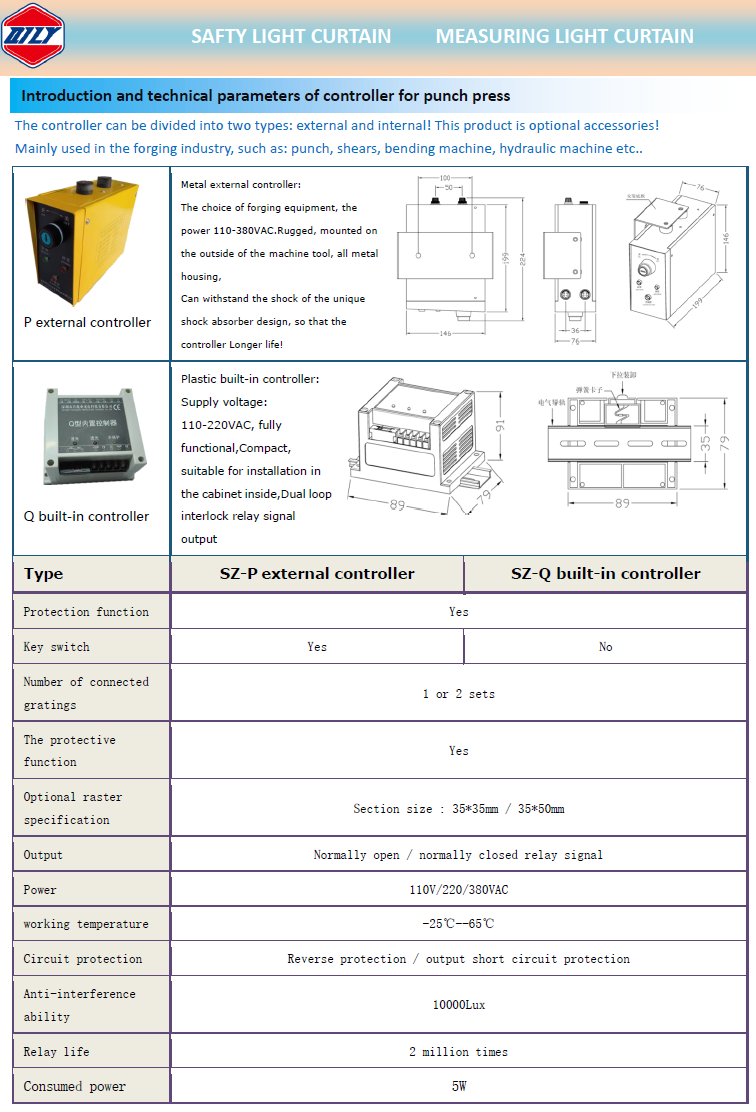 SZJ Series Enhanced Safety Light Curtain Safety Gratings - Technical Specifications Overview