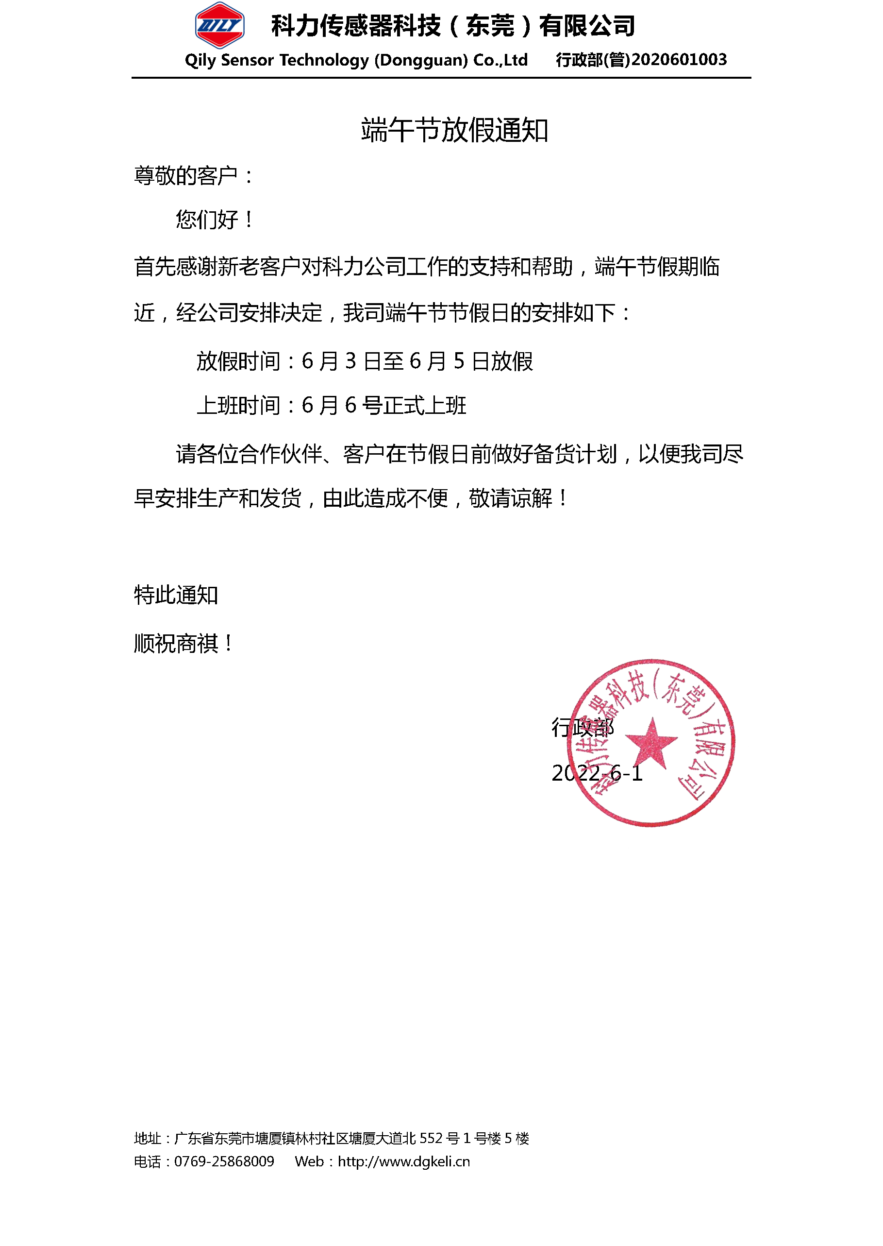 有關(guān)我司2022年端午節(jié)放假通知