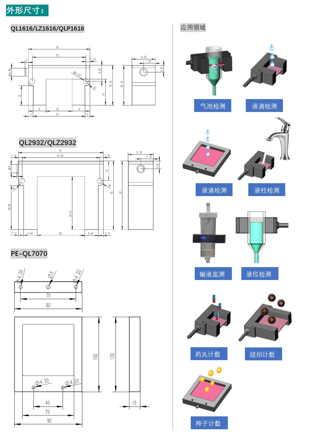 l 檢測(cè)面:16*16mm,29*32mm,70*70mm